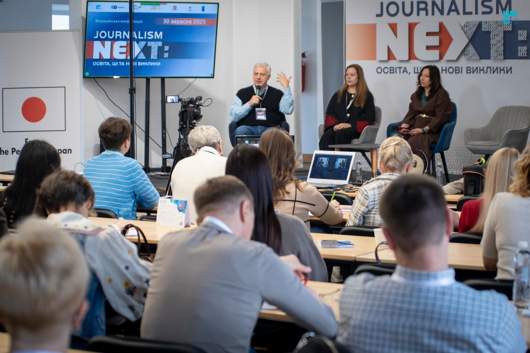 30 вересня 2025 року ректор УГСП, доктор історичних наук, професор Віталій Коцур разом із завідувачкою кафедри, кандидатом істичних наук, доцентом Лесею Коцур та викладачем Артемом Колесником долучилися до Всеукраїнської конференції «Journalism Next: освіта, ШІ та нові виклики», що відбулася в Національному університеті «Києво-Могилянська академія». Захід став платформою для обговорення ключових напрямів підготовки сучасних журналістів в умовах війни та стрімкого розвитку технологій.
