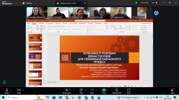 Магістри презентували результати власних досліджень, що охоплюють широкий спектр актуальних питань впровадження цифрових інструментів, інноваційних педагогічних підходів, медіаосвітніх технологій та засобів інформаційно-комунікаційної підтримки освітнього процесу.