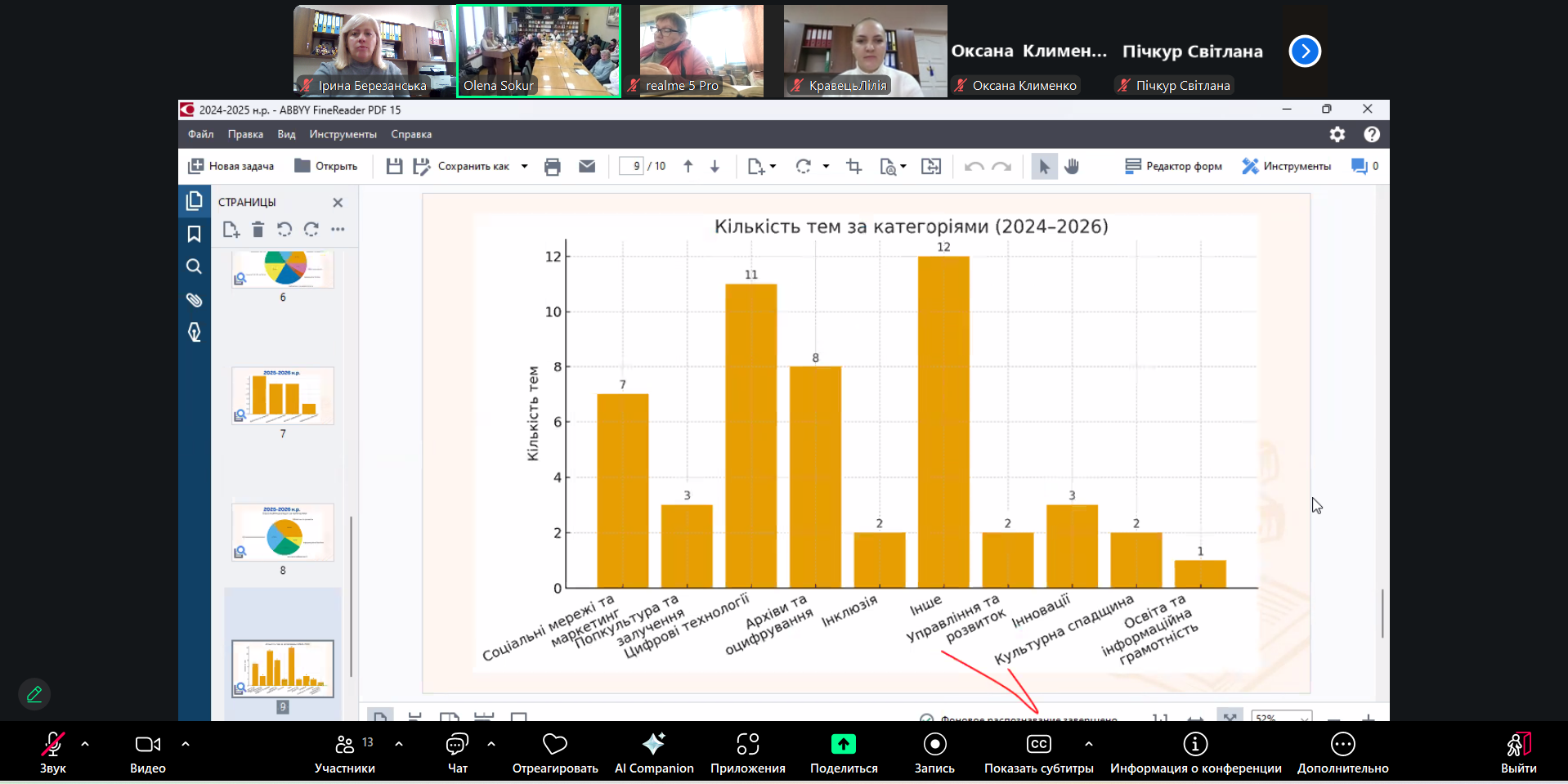 Одинадцяті бібліотекознавчі студії стали важливою платформою для фахової дискусії щодо історії та сучасного стану українського бібліотекознавства, ролі наукових бібліотек у збереженні документної спадщини, розвитку інформаційних ресурсів і впровадження інновацій у цифрову епоху. Учасники заходу приділили особливу увагу трансформації бібліотек в умовах цифровізації, коли вони постають як ключові освітні, наукові та культурні центри.